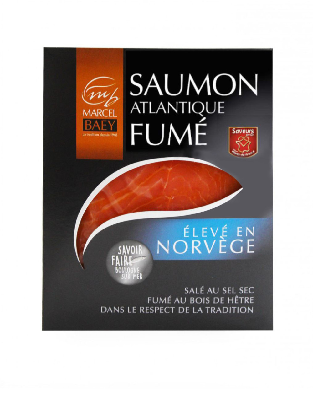 Nous sélectionnons les meilleurs saumons de Norvège grâce à notre expertise et à nos partenariats. Ensuite notre saumon est salé au sel sec puis fumé à la sciure de bois de hêtre, lui conférant un gout authentique. Notre traiteur de saumon fumé 150g est idéal pour déguster sur des toasts ( poids des tranches entre 30g et 40g ). ce produit est certifié "SAVEURS EN OR", garantie d’un produit de qualité fabriqué dans la région des HAUTS DE France.