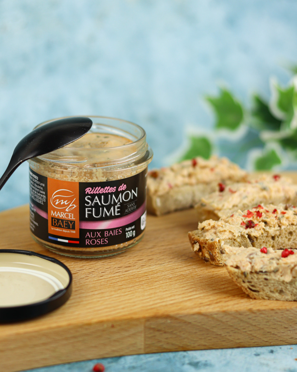 Composition : Saumon fumé 65% , crème fraîche, persil, ciboulette, fibre végétale, épices et plantes aromatiques. (Traces possibles de crustacés, fruits à coques, mollusques, moutardes, œuf, sésame.)