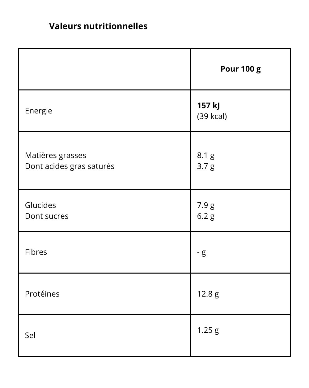 | Pour 100 g | |